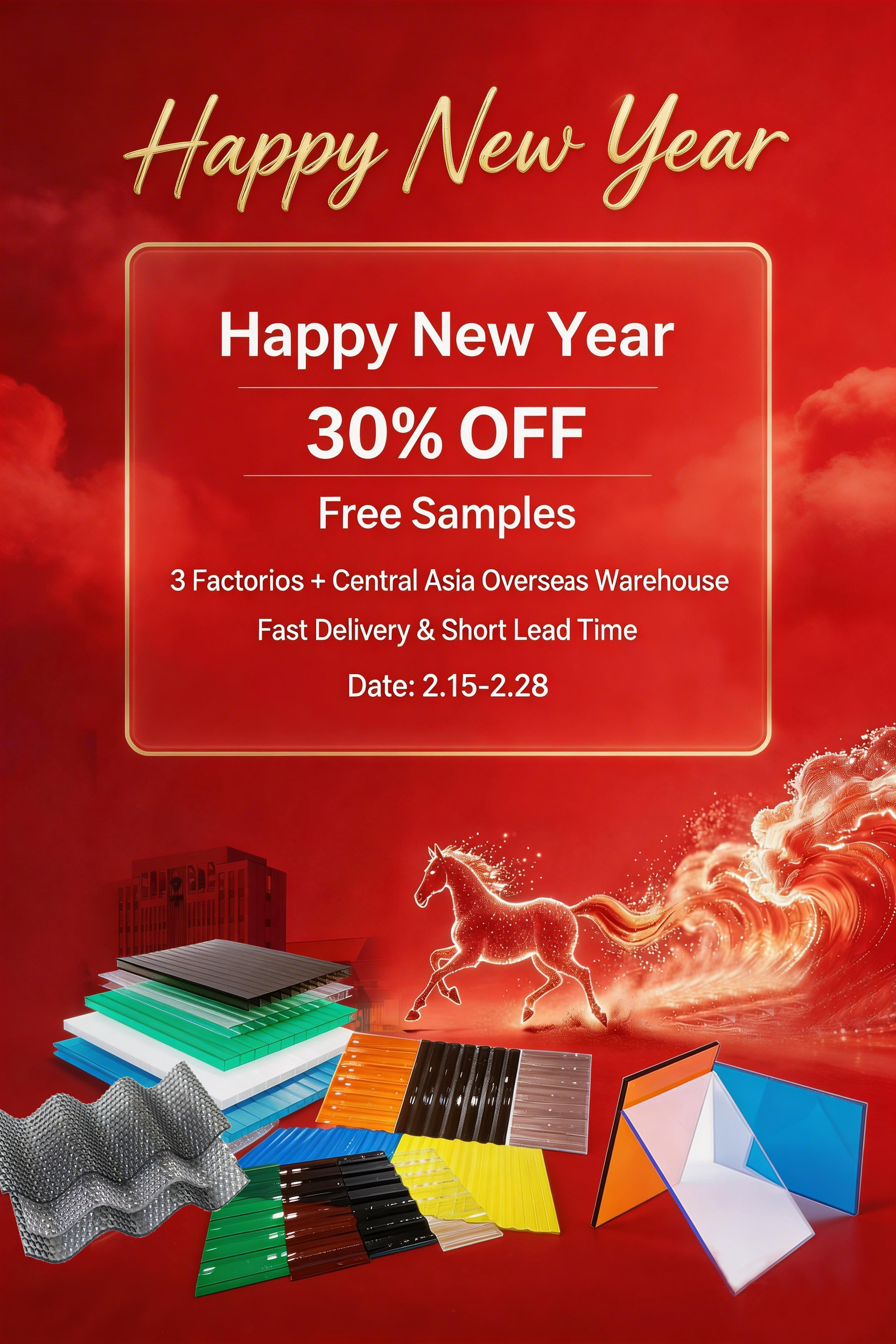 This Lunar New Year marks a time of renewal, gratitude, and celebration. We are deeply thankful for the trust and support you have bestowed upon us over the past year, from the successful collaboration on UzBuild 2026 in Uzbekistan to the countless projects powered by our high-performance polycarbonate solutions. Your partnership has been the driving force behind our innovation and growth, and we cherish every opportunity to work alongside you.